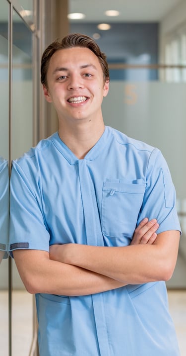 Als tandarts vind ik het belangrijk om mijn patiënten te behandelen zoals ik zelf, of mijn familie, graag behandeld zou willen worden. Een bezoek aan de tandarts kan spannend zijn, daarom doe ik er alles aan om een rustige en vertrouwde omgeving te creëren waarin u zich op uw gemak voelt en met een goed gevoel de praktijk verlaat. Tijdens de behandelingen streef ik naar een duurzaam en zorgvuldig resultaat, waarbij ik niet alleen kijk naar de technische kant, maar juist ook naar u als persoon. Goede communicatie en persoonlijke aandacht staan voor mij centraal. Mijn doel is om samen met u te werken aan een gezonde mond én een glimlach waar u zich prettig bij voelt.